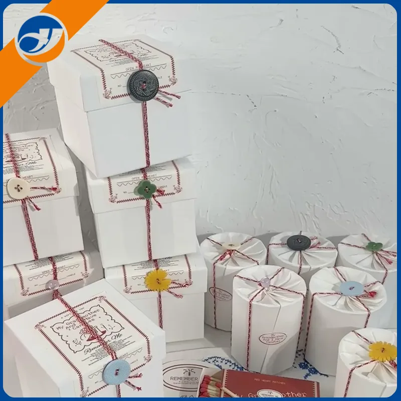 Kinkekarbi kujundus:Aroomiteraapia küünla kinkekarpKasutab mattpaberi, raudkasti või puidust materjali, millel on kuldpliidiga logo, lint, kuivatatud lillede kaunistamine, lihtne, kuid tipptasemel, sobiv kingituste andmiseks või isiklikuks kasutamiseks. Sisaldasid aksessuaare: lisaks küünlateleAroomiteraapia küünla kinkekarpKinkekarbid sisaldavad tavaliselt matše, küünla kustutamise tööriistu, lõhnaga kaarte või kohandatud õnnistusi. Mõnel kaubamärgil on emotsionaalse väärtuse suurendamiseks käsitsi kirjutatud kirju.