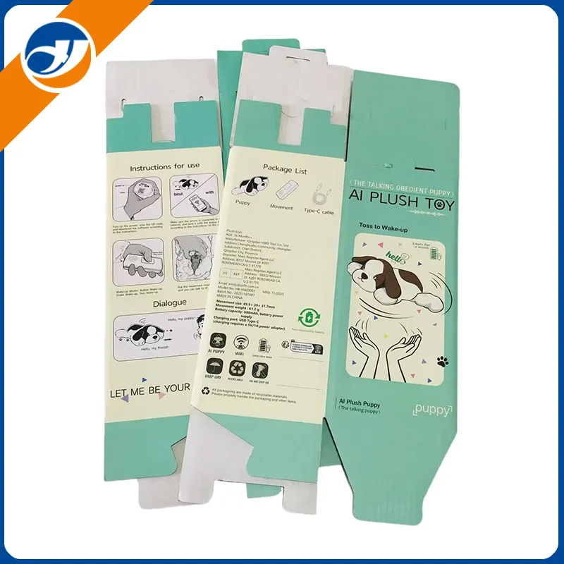 See on kohandatud lainepapist pakkekarp, mis on loodud spetsiaalselt pehme kutsika mänguasja jaoks. See stantsitud täisvärviline trükitud kast, mis on loodud nii kaitseks kui ka brändi lugude jutustamiseks, ühendab funktsionaalse disaini keskkonnasõbralike materjalidega, muutes selle ideaalseks pakkimislahenduseks plüüsist mänguasjadele. Taaskasutatavast lainepapist valmistatud see sisaldab selgeid kasutusjuhiseid, üksikasjalikku pakendiloendit ja kaubamärgisõnumit, et täiustada lahtipakkimise kogemust, järgides samal ajal säästvaid tavasid.
